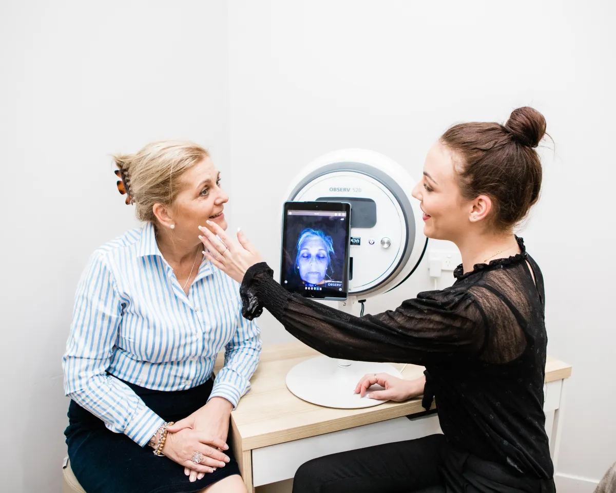 Once you have arrived at aGlo Salon + Skin Clinic your therapist will take you through to the OBSERV Skin scan machine where we will take a series of 6 scans of your skin. Your therapist will go through each of your scans and discuss her analysis and findings with you. From this state of the art technology we can determine skin texture, moisture levels, and pigmentation, as well as any other skin conditions which may be present.